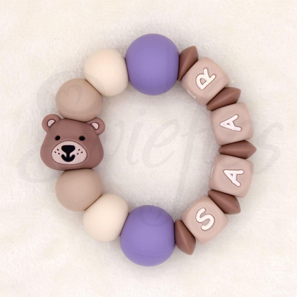 BIJTRING met naam | Beer | Saar | Lavendel Beige