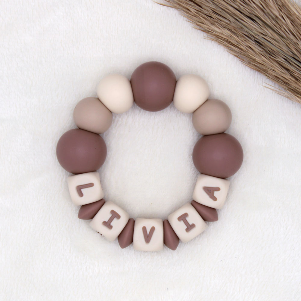 BIJTRING met naam | Livia | Crème, Havermout, Hazelnoot