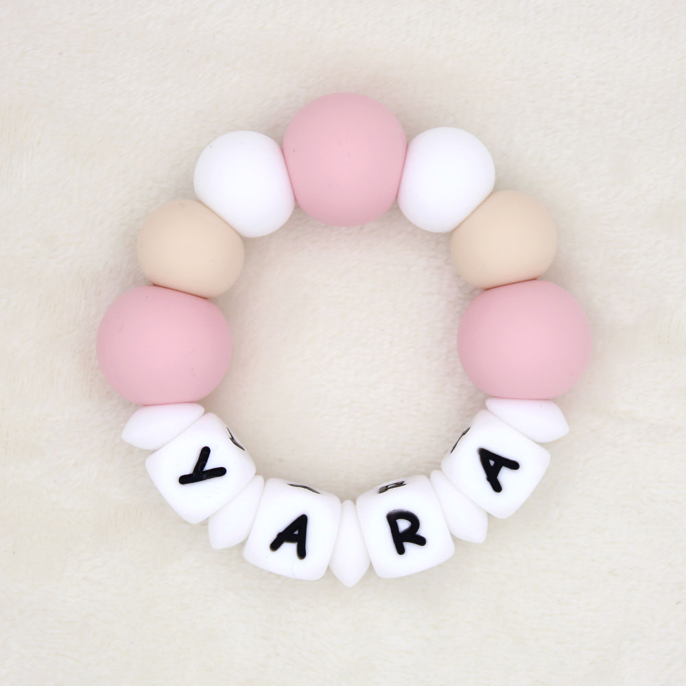 Bijtring met naam | Yara | Zachtroze, Crème, Wit
