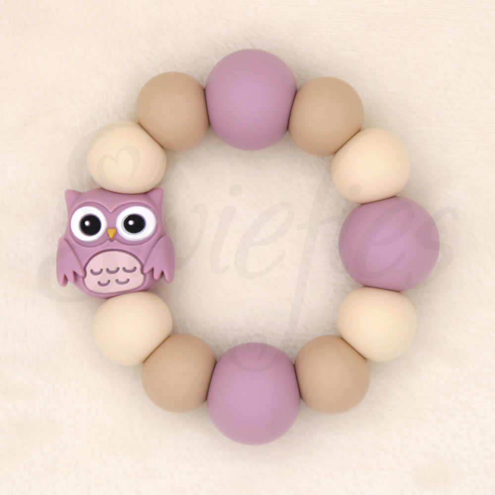 Ontdek onze schattige bijtring met uiltje – ideaal voor baby’s die tandjes krijgen!