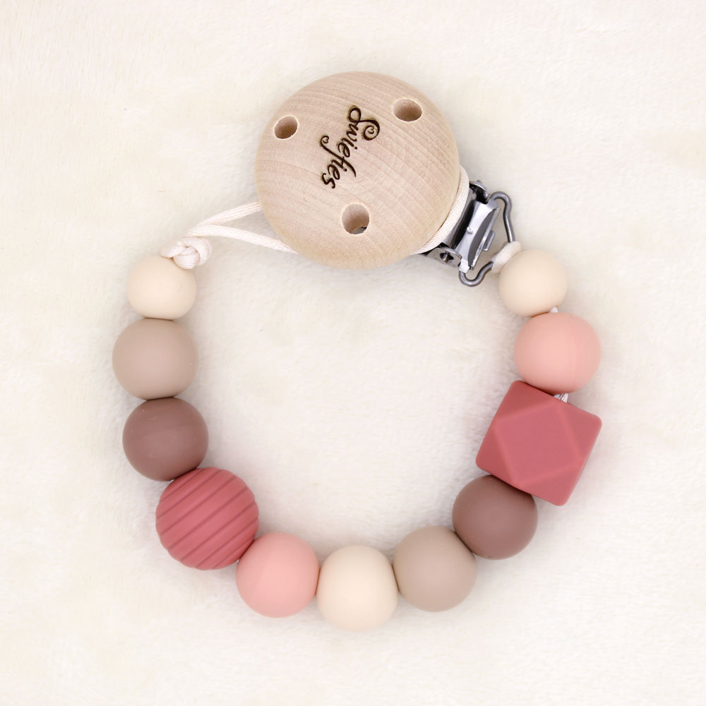 Met een speenkoord van Swiefies kies je voor een handig, stijlvol én veilig product. Een Swiefies speenkoord is getest en gecertificeerd volgens de Europese Veiligheidsnorm (NEN-EN 12586). Een Swiefies speenkoord wordt in Nederland met de hand gemaakt van een stevig satijndraad, siliconen kralen en een houten clip. Al deze materialen zijn getest op de aanwezigheid van schadelijke (chemische) stoffen. Het kan dus geen kwaad wanneer je kindje het speenkoord in zijn/haar mond stopt, maar let op; een Swiefies speenkoord is géén (bijt)speelgoed! (Koop dan een Swiefies bijtring).