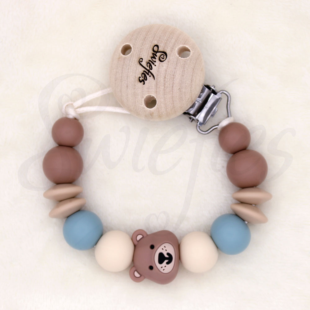 Met een speenkoord van Swiefies kies je voor een handig, stijlvol én veilig product. Een Swiefies speenkoord is getest en gecertificeerd volgens de Europese Veiligheidsnorm (NEN-EN 12586). Een Swiefies speenkoord wordt in Nederland met de hand gemaakt van een stevig satijndraad, siliconen kralen en een houten clip. Al deze materialen zijn getest op de aanwezigheid van schadelijke (chemische) stoffen. Het kan dus geen kwaad wanneer je kindje het speenkoord in zijn/haar mond stopt, maar let op; een Swiefies speenkoord is géén (bijt)speelgoed! (Koop dan een Swiefies bijtring).