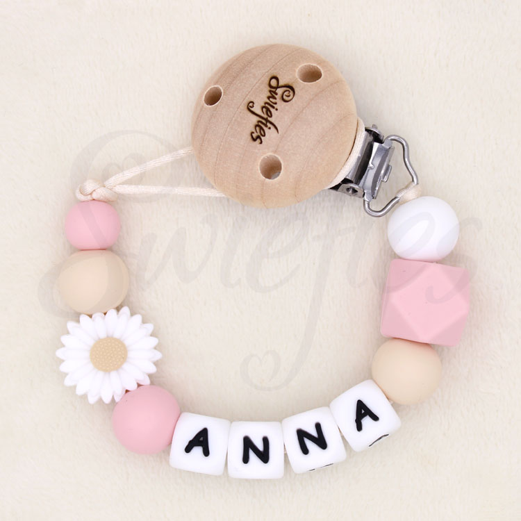 Op zoek naar een mooi en veilig speenkoord met naam voor je kleintje? Ontdek het gepersonaliseerde speenkoord met roze tinten en wit bloemetje van Swiefies! Dit stijlvolle accessoire zorgt ervoor dat de speen altijd binnen handbereik blijft en is perfect als kraamcadeau. Dankzij de mogelijkheid om het speenkoord volledig naar wens aan te passen, creëer je een uniek en persoonlijk cadeau voor elke baby.