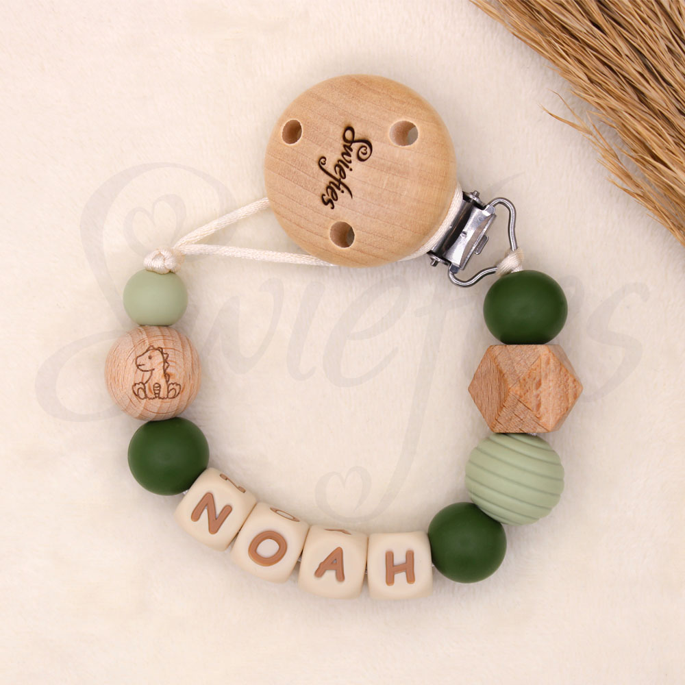 De samenstelling van dit speenkoord kan veranderen bij een naamlengte groter dan 4 letters. Heeft jouw kindje een lange naam? Dan zal Swiefies enkele kralen moeten vervangen voor een letterkraal i.v.m. de maximale veiligheidslengte van 22 cm. Om diezelfde reden hanteert Swiefies een maximum van 6 letters per speenkoord. Is de naam van jouw kindje langer dan 6 letters, dan adviseert Swiefies slechts een deel van de naam of alleen de eerste letter van de naam te gebruiken. We proberen uiteraard altijd de stijl van het speenkoord zoveel mogelijk te behouden!