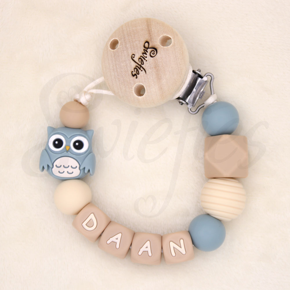 Speenkoord met naam | Uil | Daan | Grijsblauw