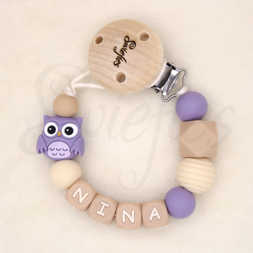 Ben je op zoek naar een praktisch én stijlvol accessoire voor je baby? Dit speenkoord met naam in neutrale en paarse tinten, afgewerkt met een uiltje, is dé baby must-have die je niet wilt missen. Met dit speenkoord blijft de speen altijd binnen handbereik en voorkom je dat deze op de grond valt of kwijtraakt. Een perfecte combinatie van functionaliteit, veiligheid en stijl!