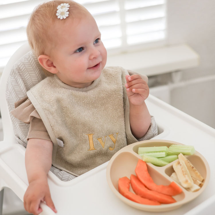 Natuurlijk is deze slab nog leuker met een naam erop geborduurd. Vul de naam in, kies het lettertype en de kleur van het lettertype om jouw slabbetje te personaliseren.