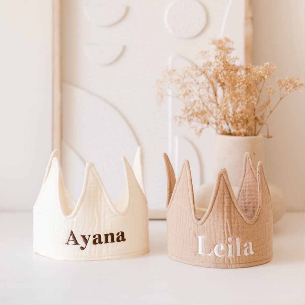 Personaliseerbaar hydrofiel katoenen kroontje – Perfect voor feestelijke momenten