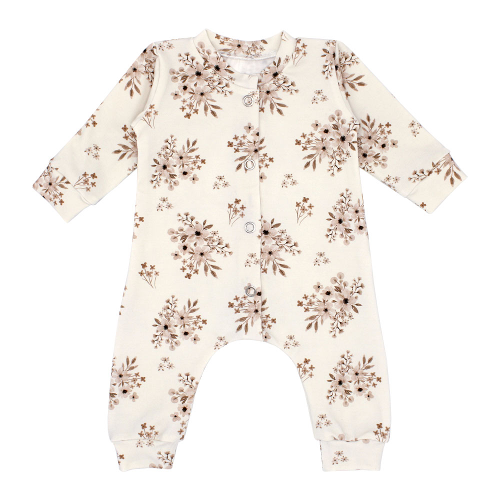 Het boxpakje Flower Betty is een crème boxpakje bedrukt met mooie beige bloemen. Verkrijgbaar in maat 50 t/m 74 en te combineren met het haarbandje en/of mutsje Flower Betty.