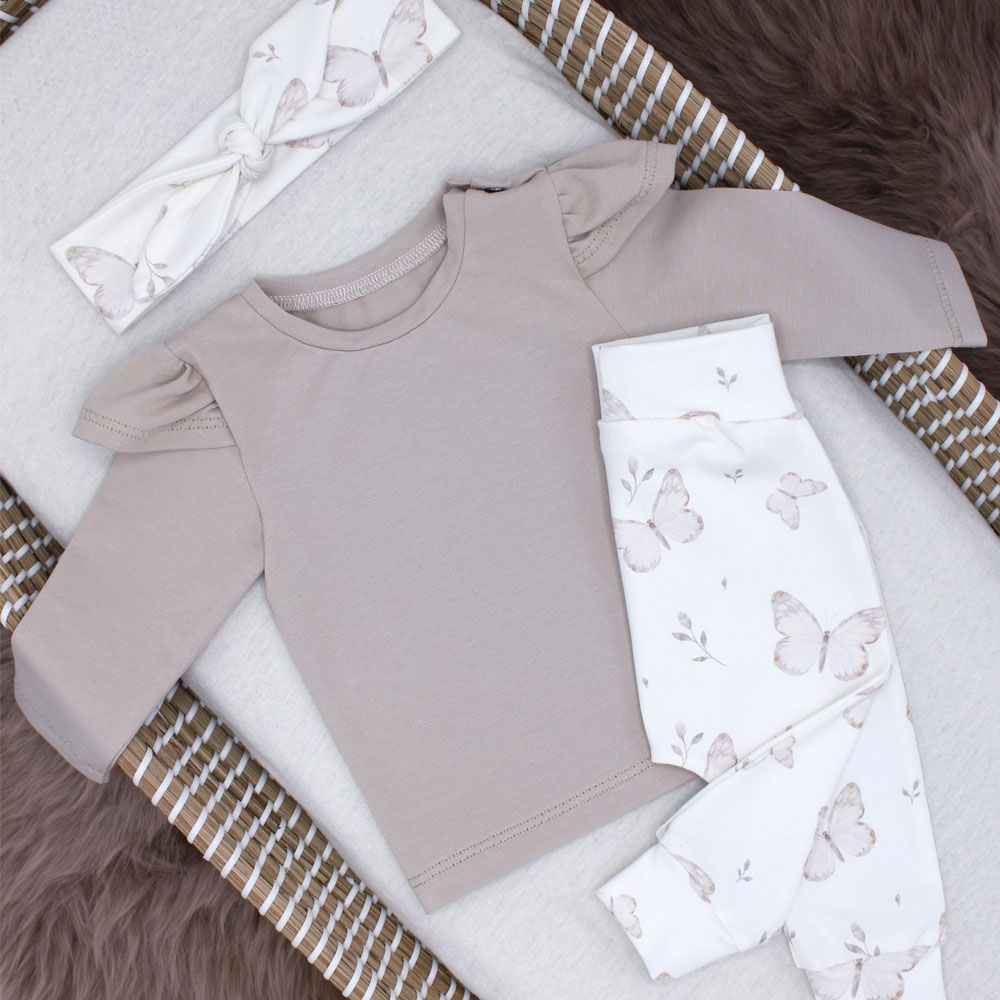 Verkrijgbaar in maat 50 t/m 86 en te combineren met bijvoorbeeld het shirtje Sand en het haarbandje en/of mutsje Butterflies.