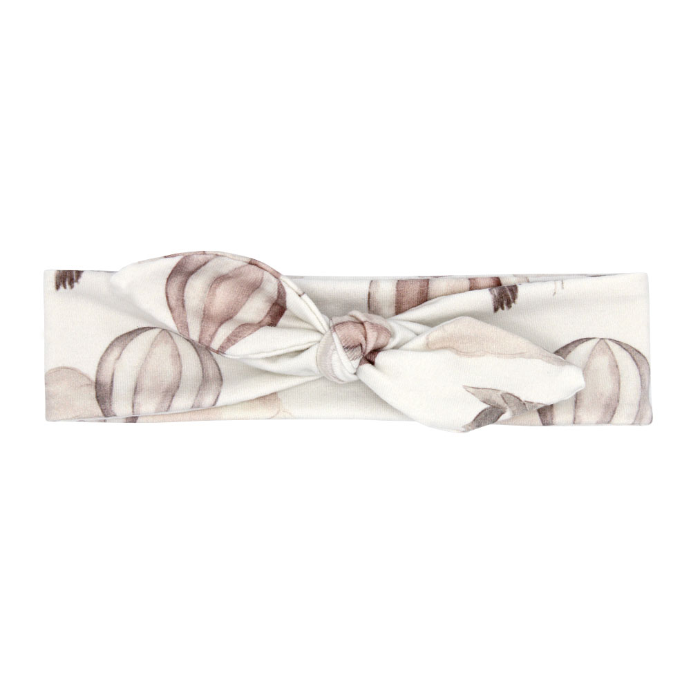 Het haarbandje Air Balloons is een Off-White (gebroken wit) haarbandje bedrukt met luchtballonnen en is eenvoudig door uzelf te knopen. Het haarbandje is geschikt voor kindjes tot ongeveer 1 jaar en te combineren met het boxpakje en/of broekje Air Balloons.