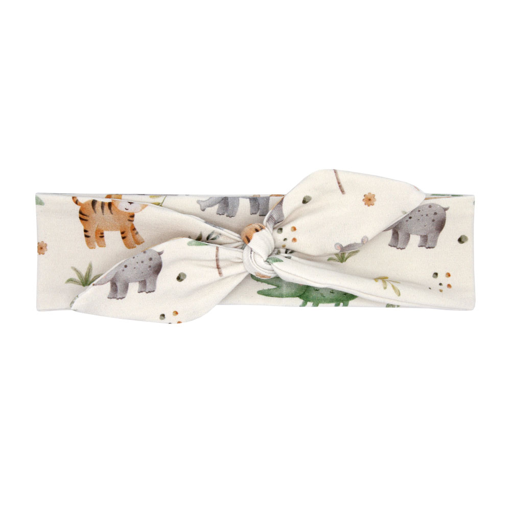 Het haarbandje Safari animals is een crème haarbandje bedrukt met Jungle dieren en is eenvoudig door uzelf te knopen. Het haarbandje is geschikt voor kindjes tot ongeveer 1 jaar en te combineren met het boxpakje en/of broekje Safari animals en bijvoorbeeld het shirtje Sage Green.