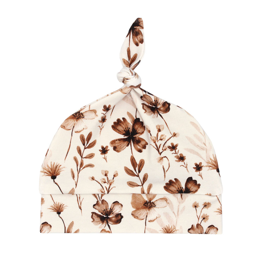 Het babymutsje Flower Dream is crème knoopsmutsje bedrukt met mooie bruine bloemen. Dit mutsje is afgewerkt met een breed en zacht boordje die rekbaar is om mooi en comfortabel aan te sluiten op het hoofdje van je baby. Met dit mutsje kies je niet alleen voor stijl en comfort, maar ook voor geborgenheid en het gevoelige hoofdje te beschermen.