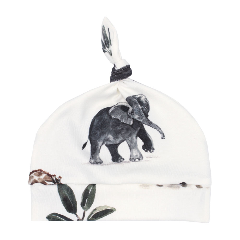 Het babymutsje Safari is een off-white knoopsmutsje bedrukt met junge dieren. Dit mutsje is afgewerkt met een breed en zacht boordje die rekbaar is om mooi en comfortabel aan te sluiten op het hoofdje van je baby. Met dit mutsje kies je niet alleen voor stijl en comfort, maar ook voor geborgenheid en het gevoelige hoofdje te beschermen.
