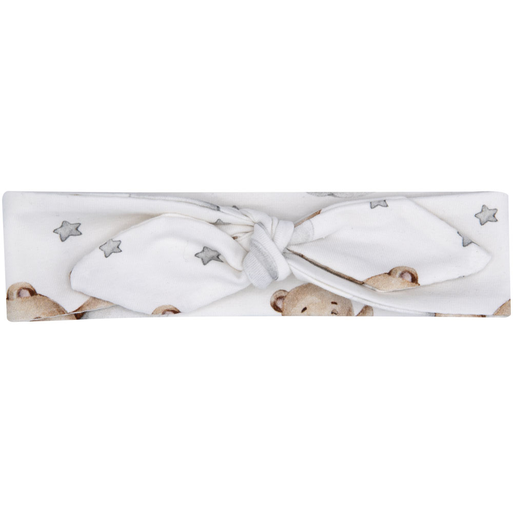 Het haarbandje Dreaming Teddy is een Off-White (gebroken wit) haarbandje bedrukt met een slapend Teddybeertje en eenvoudig door uzelf te knopen. Het haarbandje is geschikt voor kindjes tot ongeveer 1 jaar en te combineren met het boxpakje en/of broekje Dreaming Teddy