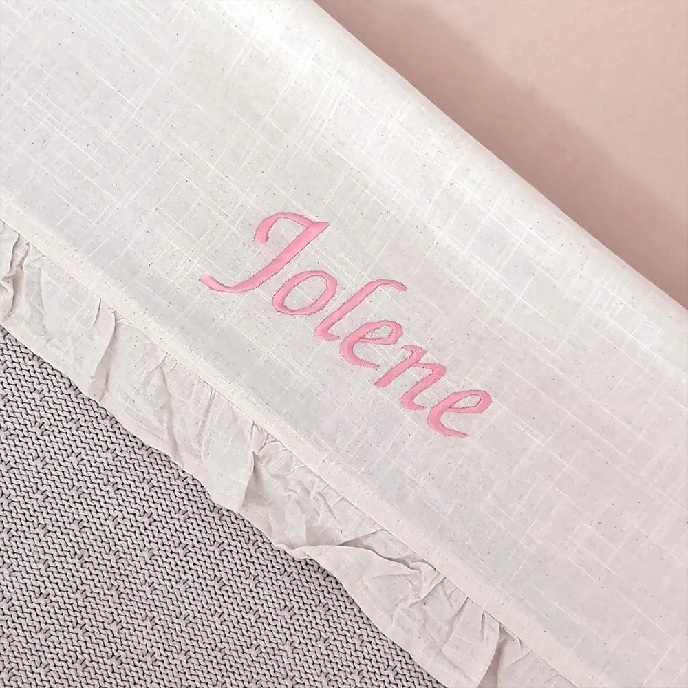 Geef je kindje het beste met dit luxe, gepersonaliseerde ruffle ledikant lakentje en voeg een prachtig en uniek detail toe aan de babykamer!